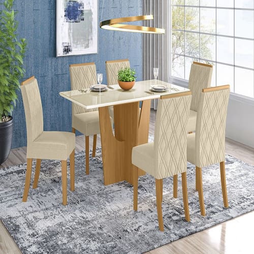 O(a) Mesa de Jantar 6 Lugares Nicole/Vita com Vidro Natural/Off White/Linho - Pnr Móveis é produzido em MDF e MDP na escala de brilho Fosco, e possui um grau de dificuldade de montagem: Médio.