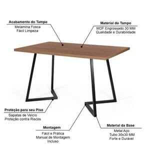 Design Industrial com Elegância Moderna Com formato retangular e traços retos, a Mesa Rigo 180x90 cm apresenta um estilo industrial autêntico, perfeito para quem aprecia uma decoração contemporânea. Seu tampo em MDF de 30 mm, com reforço nas laterais e acabamento laminado fosco, oferece uma superfície resistente e fácil de limpar, ideal para o uso diário.