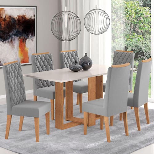 O(a) Mesa de Jantar 6 Lugares San Diego Blonde/Veludo Cinza - Viero Móveis é produzido em MDF e MDP na escala de brilho Semi-Brilho, e possui um grau de dificuldade de montagem: Médio.