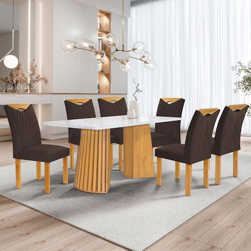 O(a) Mesa de Jantar 6 Lugares Stella com Vidro Ripado Cinamomo/Off White/Marrom - Cel Móveis é produzido em MDF na escala de brilho Fosco, e possui um grau de dificuldade de montagem: Médio.