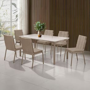 Mesa de Jantar 6 Lugares Tampo de MDF e Vidro Isis New Aço Nobre