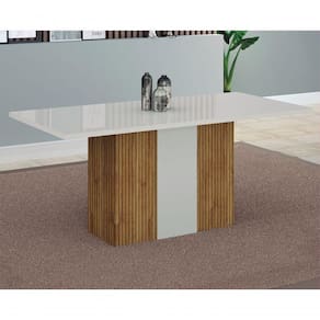 Mesa De Jantar 6 Lugares Tampo Mdf/vidro Doha 160cm Moveis Leifer Cadeiras Não Inclusas Decor/off White/decor