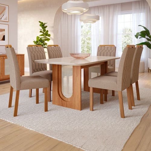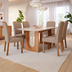 - Acompanha: Mesa de Jantar, 6 Cadeiras, Kit Ferragens e Manual de Montagem