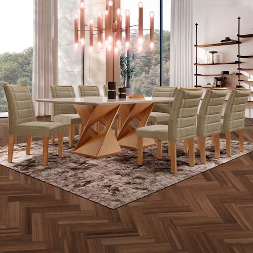 - Acompanha: Mesa de Jantar + 8 Cadeiras + Manual de Montagem