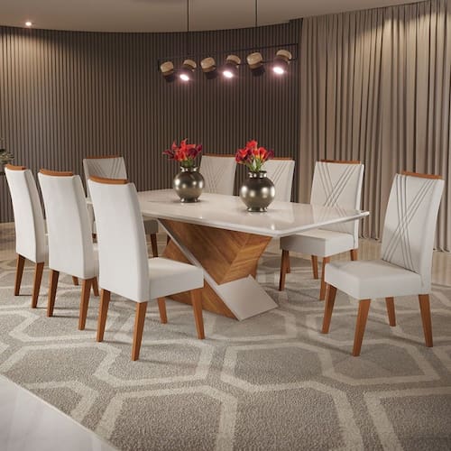- Acompanha: Mesa de Jantar + 8 Cadeiras + Kit Ferragem + Manual De Montagem