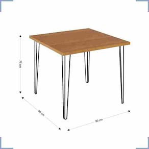O tampo da mesa é fabricado em MDP 15 mm. O revestimento do tampo é feito através do sistema de impressão com secagem UV em linha, onde o móvel recebe um tratamento de pintura de 07 camadas com secagem UV, proporcionando maior durabilidade ao móvel. - Pé Hairpin Legs. Os pés fininhos ganharam esse nome porque "hairpin" quer dizer grampo de cabelo e "leg" significa pernas, ou seja, seria uma espécie de "pernas de grampo de cabelo" . Os famosos hairpin legs estão em alta.