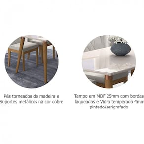 ( Mesa avulsa, não acompanha cadeiras. ) Mesa Adele 1300x800 Cimol.Poder reunir a família e os amigos ao redor de uma mesa sofisticada e elegante. com esta linda Mesa de Jantar você proporcionará aos convidados situações mais agradáveis e descontraídas. Acabamento da Base: Verniz Acabamento do Tampo: Pintura UV Ambiente Principal: Sala de Jantar codigo_ean: 7898646145154 Complexidade da Montagem: Média: pode ser montado por mais de uma pessoa e/ou necessite de maior conhecimento para montagem Cor: Madeira/Off White Cor do Produto: Madeira/Off White Dobrável: Não Escala de Brilho: Semi-Brilho Espessura do Tampo: 29 mm Extensível: Não Informações Complementares: Produto em Madeira Tauari com Bordas Laqueadas e vidro pintado/serigrafado Itens Inclusos: 1 Mesa e Manual de Montagem. Linha ou Coleção: Adele Manual de Montagem e Instalação: https://product-hub-prd.madeiramadeira.com.br/503382/documents/6c8d360a-7a52-4800-b881-97392772fa86esquemademontagemmesaadele.pdf Material da Base: Madeira Maciça Material do Tampo: Vidro/MDF Material Principal: Madeira Maciça Medida da Base (A x L x P): 77cmx80cmx130cm Medida do Tampo (L x C x E): 80cmx130cmx2,9cm Necessita Montagem: Sim Origem do Produto: Nacional Peso: 36,5 kg Possui Base: Sim Possui Rodízio: Não Possui Suporte Giratório: Não Recomendações de Uso, Manutenção e Limpeza: Limpar com pano seco Sistema de Montagem: Parafusos, sapatas e suporte fixação de pé Suporta Até (kg): 40 kg Tipo de Madeira Maciça: Tauari Tipo de Madeira Maciça da Base: Tauari Ean: 7898646145154