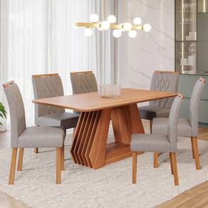 Mesa de Jantar Ágata 180x90 com Tampo em MDF e 6 Cadeiras Juliana Wood - Cimol Móveis