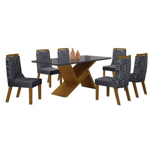 Mesa de Jantar Ágata 180x90 Freijó Chumbo com 6 Cadeiras MDF Freijó Joli Chumbo Leifer Móveis