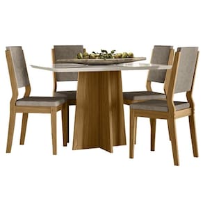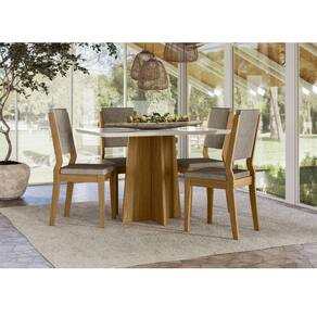 Mesa de Jantar Ambiente Anitta 120x80 cm com Vidro Ype Off White e 4 Cadeiras Carol Ype Camurça Marrom – New Ceval