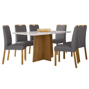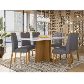 Mesa de Jantar Ambiente Anitta 160x90 cm com Vidro Ype Off White e 6 Cadeiras Mariana Ype Veludo Cinza– New Ceval
