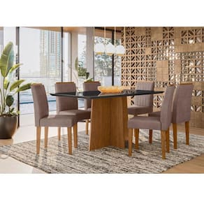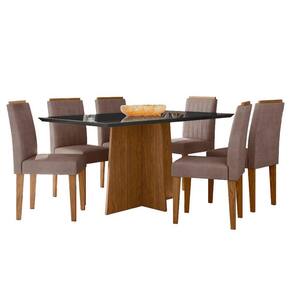 Mesa de Jantar Ambiente Anitta 160x90 cm com Vidro Ype Preto e 6 Cadeiras Ana Ype Veludo Marrom Rose – New Ceval