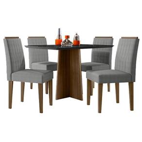 Mesa de Jantar Anitta 120x80 cm com Vidro Imbuia Preto e 4 Cadeiras Ana Imbuia Linho Cinza Claro – New Ceval