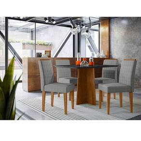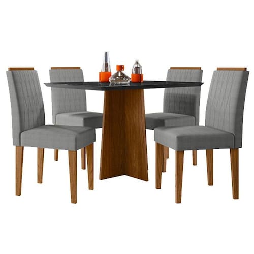 Mesa de Jantar Anitta 120x80 cm com Vidro Ype Preto e 4 Cadeiras Ana Ype Linho Cinza Claro – New Ceval