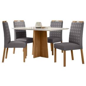 Mesa de Jantar Anitta 135x90 cm com Vidro Ype Off White e 4 Cadeiras Mariana Veludo Cinza– New Ceval