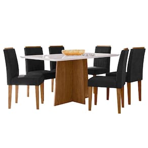 Mesa de Jantar Anitta 160x90 cm com Vidro Ype Off White e 6 Cadeiras Ana Ype Veludo Preto – New Ceval