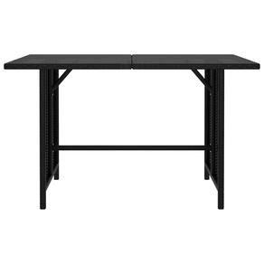 - Cor: preto- - Forma: retangular- - Material: polirattan sintético- - Acabamento: revestido a pó- - Interno/externo: interno/externo- - Tampa incluída: Não- - Sala: varanda- - Capacidade: não especificada- - Número máximo de pessoas: 4- - Dimensões: 27,6 x 43,3 x 25,6 pol. (L x C x A) - - Altura da perna: 25,6 pol.- - Peso: 156,5 lbs.- - Balanços: Não- - Marca: vidaXL- - A entrega contém: mesa de jantar de jardim- - Montagem necessária: Sim- - Número recomendado de pessoas para montagem: 2- - SKU: 313511- - EAN: 8720286166802-