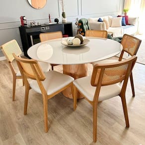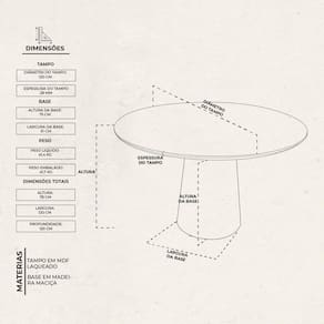 Apresentamos a Mesa de Jantar Araçá, uma peça elegante e versátil que será o ponto central de refeições compartilhadas entre familiares e amigos, seja na sala de jantar, na cozinha ou em ambientes comerciais. Com um design contemporâneo e acabamento de alta qualidade, esta mesa oferece praticidade e estilo para diversos espaços. Acabamento: Laca Acabamento da Base: Verniz Acabamento do Tampo: Laca Ambiente Principal: Sala de Jantar Atóxico: Não codigo_ean: 7909903623527 Complexidade da Montagem: Baixa: pode ser montado por uma pessoa sozinha Cor: Off-White Cor do Produto: Off-White Design da Base: Cilindro Dobrável: Não Escala de Brilho: Semi-Brilho Espessura do Tampo: 28 mm Extensível: Não Itens Inclusos: TAMPO E BASE Linha ou Coleção: Mata Atlântica Manual de Montagem e Instalação: https://product-hub-prd.madeiramadeira.com.br/896004/documents/095ec3a4-10ea-4545-ad88-29b7a35e6161ualdemontagemmesaconedocx1.pdf Material da Base: Madeira Maciça Material do Tampo: Vidro/MDF Material Principal: MDF Medida da Base (A x L x P): 75X50X50 Medida da Mesa (A x L x P): 78x120x120 Medida do Tampo (L x C x E): 120X120X0,28 Necessita Montagem: Sim Origem do Produto: Nacional Peso: 41,4 kg Possui Portas: Não Possui prateleira: Não Possui Rodízio: Não Possui Suporte Giratório: Não Possui Vidro: Sim Recomendações de Uso, Manutenção e Limpeza: Limpeza: Utilize pano levemente úmido em seguida pano seco. Nunca use solventes, objetos cortantes ou abrasivos. Sistema de Montagem: Coloque o tampo de vidro em cima da base, centralizado. Parafuse de baixo para cima nos pontos indicados. Suporta Até (kg): 40 kg Tipo de Madeira Maciça da Base: Eucalipto