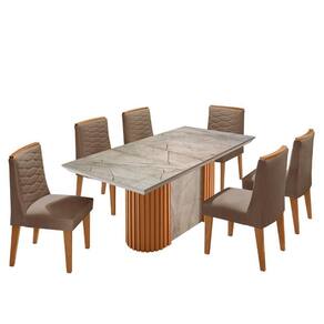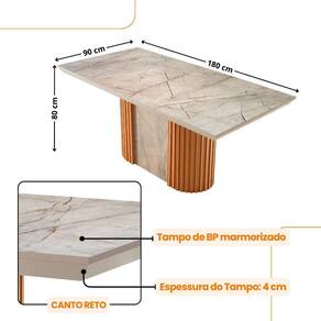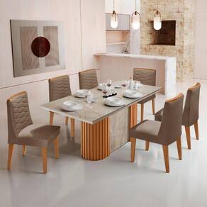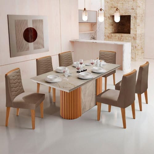 Mesa de Jantar Aspen 180cm Tampo BP Marmorizado Canto Reto 6 Cadeiras Eloise Moderna Mobilia
