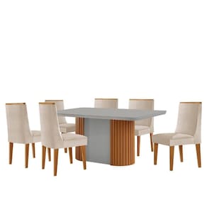 Mesa De Jantar Aspen 180cm Tampo Mdf E Vidro 6 Cadeiras Lisboa Veludo Creme /nat/off/serig. Off - Bege