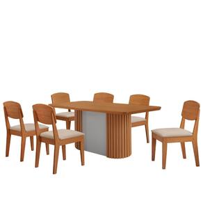 Mesa de Jantar Aspen 180cm Tampo MDF Laminado com 6 Cadeiras Copper Moderna Mobília - Bege Claro