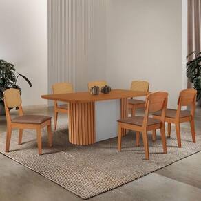 Mesa De Jantar Aspen 180cm Tampo Mdf Laminado Copper Premium Tork / /off White Conjunto Mesa Aspen e Cadeira Copper Premium A Mesa Aspen traz um design moderno e imponente, com tampo em MDF e canto copo. Sua base ripada em MDF e o grande destaque da peca, trazendo uma textura cheia de personalidade. A Mesa Aspen transforma qualquer ambiente com sua presenca unica e atual o modelo perfeito para quem busca um design clean e sofisticado, trazendo leveza ao seu ambiente.