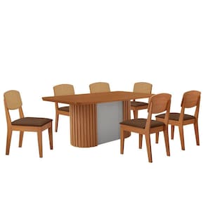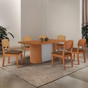 Mesa De Jantar Aspen 180cm Tampo Mdf Laminado Copper Premium Veludo Marrom//off White Conjunto Mesa Aspen e Cadeira Copper Premium A Mesa Aspen traz um design moderno e imponente, com tampo em MDF e canto copo. Sua base ripada em MDF e o grande destaque da peca, trazendo uma textura cheia de personalidade. A Mesa Aspen transforma qualquer ambiente com sua presenca unica e atual o modelo perfeito para quem busca um design clean e sofisticado, trazendo leveza ao seu ambiente.
