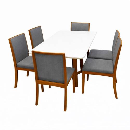 Mesa de Jantar Bali 160x90cm com Vidro e 6 Cadeiras modelo Lara em Linho