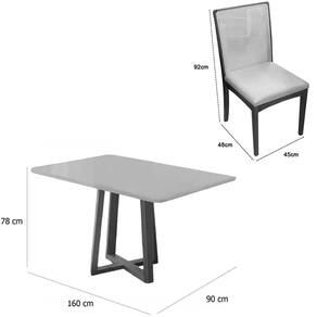 Conjunto completo para sala de jantar ou cozinha, com mesa retangular 160x90cm, tampo com vidro e 6 cadeiras estofadas em linho.