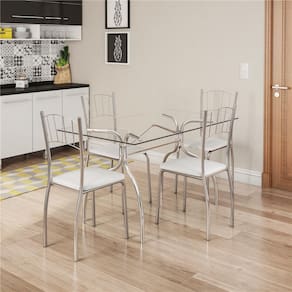 As cadeiras contam com estrutura em aço cromado, estofados com revestimento vinil que trazem um toque charmoso e um design encantador. Além disso, cada cadeira suporta até 100 Kg.