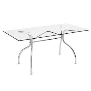 Bonita, a mesa conta com material de alta qualidade, apresenta estrutura cromada, formato retangular, estrutura diferenciada e tampo de vidro incolor de 8 mm.
