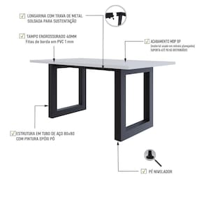 Sobre o ProdutoMesa de Jantar Bronx R 160x90x77cm BRMJ9160R çoDescrição do Produto:A mesa de jantar Bronx BRMJ9160R é a expressão perfeita da fusão entre elegância e robustez, ideal para ambientes modernos e contemporâneos. Com dimensões de 1,60x0,90m, esta peça impressiona pela sua presença marcante. O tampo engrossurado de 40mm, finalizado com fitas de PVC de 01mm, oferece uma superfície resistente e de excelente acabamento. A estrutura em tubos de aço 80x80mm, complementada por longarinas produzidas com tubos 30x50mm, garante estabilidade e durabilidade, enquanto o design minimalista proporciona um toque moderno e sofisticado a qualquer espaç linha City_Scape captura a sofisticação e o estilo das grandes metrópoles, trazendo móveis inspirados em bairros e cidades icônicas. Com design moderno e cosmopolita, cada peça reflete a elegância urbana, conectando ambientes contemporâneos à atmosfera vibrante das cidades ao redor do mundo. Os tampos engrossurados em MDP BP recobertos com fitas de borda em PVC de 01mm, garantem resistência e durabilidade com um acabamento refinado. As estruturas em aço com soldas a laser e suavizadas, possuem acabamento em pintura epóxi que confere solidez e um visual moderno, garantindo a longevidade e a robustez das peç Inclusos:1 Mesa de JantarDimensões dos Produtos:Mesa de Jantar Bronx R 160x90x77cm BRMJ9160R ço: 160 x 90 x 77 cmInformações Logísticas (Comp. X Prof. X Alt.) 168 x 103,5 x 6 cm - Peso: 26,71 82 x 64 x 20 cm - Peso: 11,62 KgPeso Total: 38,33 KgObservações:Não acompanha acessórios decorativos. Imagens meramente ilustrativas.Informações Técnicas / Características:- Cor do Produto: ço- Cor do Predominante: Revestido- Marca: Metalig- Modelo: BRMJ9160R- Linha: City_Scape- Material: Mdp- Material da Estrutura / Pés: Aço- Acabamento: BP- Escala de Brilho: Fosco- Fita de Borda: Pvc - Possui Gavetas: Não - Possui Pés: 2- Pés Niveladores: Sim - Acabamento Estrutura: Epóxi-Pó- Formato: Retangular -Observações: Possui 02 Lomgarinas horizontais de aço.- Suporta Até (kg): 100kg- Comprimento: 160cm- Profundidade: 90cm- Altura: 77cm - Peso Lí.: 36,45Kg- Recomendações de Uso, Manutenção e Limpeza: Para a limpeza, utilize flanela seca ou pano macio levemente umedecido em água. Utilize um pano seco em seguida. Evite com produtos químicos (solventes, thinner, acetona, etc) e não utilize nenhum tipo de esponja de aço.- Necessita de Montagem: Sim / Acompanha Manual de Montagem- Complexidade da Montagem: Média: pode ser montado por mais de uma pessoa e/ou necessite de maior conhecimento para montagem.- Garantia: 01 ano Altura: 77 cm | Comprimento: 160 | Marca: Compace | Largura: 90 cm | Quantidade máxima de pedido: 1 | Modelo: BRMJ9160R | Necessita montagem: Sim | Quantidade de volumes: 2 | Profundidade: 90 cm | Produto: Mesa de Jantar | Cômodo indicado: | Cozinhas: Material da estrutura | Aço: Cor | Multicolorido: Coleção | Industrial: Requer Baterias | Não: Certificação Externa | Manual de montagem e kit acessórios: | Sim: Preço de tabela | 1131.3599999999999: Fabricante | Compace: do Modelo | 1: da Peça | BRMJ9160R: Cor: Branco TX/