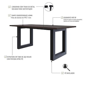 Sobre o ProdutoMesa de Jantar Bronx R 180x90x77cm BRMJ9180R çoDescrição do Produto:A mesa de jantar Bronx BRMJ9180R é a expressão perfeita da fusão entre elegância e robustez, ideal para ambientes modernos e contemporâneos. Com dimensões de 1,80x0,90m, esta peça impressiona pela sua presença marcante. O tampo engrossurado de 40mm, finalizado com fitas de PVC de 01mm, oferece uma superfície resistente e de excelente acabamento. A estrutura em tubos de aço 80x80mm, complementada por longarinas produzidas com tubos 30x50mm, garante estabilidade e durabilidade, enquanto o design minimalista proporciona um toque moderno e sofisticado a qualquer espaç linha City_Scape captura a sofisticação e o estilo das grandes metrópoles, trazendo móveis inspirados em bairros e cidades icônicas. Com design moderno e cosmopolita, cada peça reflete a elegância urbana, conectando ambientes contemporâneos à atmosfera vibrante das cidades ao redor do mundo. Os tampos engrossurados em MDP BP recobertos com fitas de borda em PVC de 01mm, garantem resistência e durabilidade com um acabamento refinado. As estruturas em aço com soldas a laser e suavizadas, possuem acabamento em pintura epóxi que confere solidez e um visual moderno, garantindo a longevidade e a robustez das peç Inclusos:1 Mesa de JantarDimensões dos Produtos:Mesa de Jantar Bronx R 180x90x77cm BRMJ9180R ço: 180 x 90 x 77 cmInformações Logísticas (Comp. X Prof. X Alt.) 188 x 103,5 x 6 cm - Peso: 29,34 82 x 64 x 20 cm - Peso: 11,62 KgPeso Total: 40,96 KgObservações:Não acompanha acessórios decorativos. Imagens meramente ilustrativas.Informações Técnicas / Características:- Cor do Produto: ço- Cor do Predominante: Revestido- Marca: Metalig- Modelo: BRMJ9180R- Linha: City_Scape- Material: Mdp- Material da Estrutura / Pés: Aço- Acabamento: BP- Escala de Brilho: Fosco- Fita de Borda: Pvc - Possui Gavetas: Não - Possui Pés: 2- Pés Niveladores: Sim - Acabamento Estrutura: Epóxi-Pó- Formato: Retangular -Observações: Possui 02 Lomgarinas horizontais de aço.- Suporta Até (kg): 100kg- Comprimento: 180cm- Profundidade: 90cm- Altura: 77cm - Peso Lí.: 38,91Kg- Recomendações de Uso, Manutenção e Limpeza: Para a limpeza, utilize flanela seca ou pano macio levemente umedecido em água. Utilize um pano seco em seguida. Evite com produtos químicos (solventes, thinner, acetona, etc) e não utilize nenhum tipo de esponja de aço.- Necessita de Montagem: Sim / Acompanha Manual de Montagem- Complexidade da Montagem: Média: pode ser montado por mais de uma pessoa e/ou necessite de maior conhecimento para montagem.- Garantia: 01 ano Altura: 77 cm | Comprimento: 180 cm | Marca: Compace | Largura: 90 cm | Quantidade máxima de pedido: 1 | Modelo: BRMJ9180R | Necessita montagem: Sim | Quantidade de volumes: 2 | Produto: Mesa de Jantar | Profundidade: 90 cm | Cômodo indicado: | Cozinhas: Material da estrutura | Aço: Cor | Multicolorido: Coleção | Industrial: Requer Baterias | Não: Certificação Externa | Manual de montagem e kit acessórios: | Sim: Preço de tabela | Fabricante | Compace: do Modelo | 1: da Peça | BRMJ9180R: Cor: Terracota/