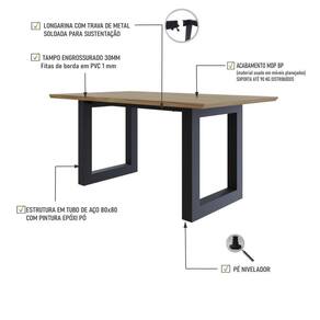 Sobre o ProdutoMesa de Jantar Bronx RG2 160x90x77cm BRMJ9160RG2 çoDescrição do Produto:A mesa de jantar Bronx BRMJ9160R é a expressão perfeita da fusão entre elegância e robustez, ideal para ambientes modernos e contemporâneos. Com dimensões de 2,00x0,90m, esta peça impressiona pela sua presença marcante. O tampo engrossurado de 30mm com bordas em 45, finalizado com fitas de PVC de 01mm, oferece uma superfície resistente e de excelente acabamento. A estrutura em tubos de aço 80x80mm, complementada por longarinas produzidas com tubos 30x50mm, garante estabilidade e durabilidade, enquanto o design minimalista proporciona um toque moderno e sofisticado a qualquer espaç linha City_Scape captura a sofisticação e o estilo das grandes metrópoles, trazendo móveis inspirados em bairros e cidades icônicas. Com design moderno e cosmopolita, cada peça reflete a elegância urbana, conectando ambientes contemporâneos à atmosfera vibrante das cidades ao redor do mundo. Os tampos engrossurados em MDP BP recobertos com fitas de borda em PVC de 01mm, garantem resistência e durabilidade com um acabamento refinado. As estruturas em aço com soldas a laser e suavizadas, possuem acabamento em pintura epóxi que confere solidez e um visual moderno, garantindo a longevidade e a robustez das peç Inclusos:1 Mesa de JantarDimensões dos Produtos:Mesa de Jantar Bronx RG2 160x90x77cm BRMJ9160RG2 ço: 160 x 90 x 77 cmInformações Logísticas (Comp. X Prof. X Alt.) 168 x 103,5 x 6 cm - Peso: 21,67 82 x 64 x 20 cm - Peso: 11,62 KgPeso Total: 33,29 KgObservações:Não acompanha acessórios decorativos. Imagens meramente ilustrativas.Informações Técnicas / Características:- Cor do Produto: ço- Cor do Predominante: Revestido- Marca: Metalig- Modelo: BRMJ9160RG2- Linha: City_Scape- Material: Mdp- Material da Estrutura / Pés: Aço- Acabamento: BP- Escala de Brilho: Fosco- Fita de Borda: Pvc - Possui Gavetas: Não - Possui Pés: 2- Pés Niveladores: Sim - Acabamento Estrutura: Epóxi-Pó- Formato: Retangular -Observações: Possui 02 Lomgarinas horizontais de aço.- Suporta Até (kg): 100kg- Comprimento: 160cm- Profundidade: 90cm- Altura: 77cm - Peso Lí.: 31,41Kg- Recomendações de Uso, Manutenção e Limpeza: Para a limpeza, utilize flanela seca ou pano macio levemente umedecido em água. Utilize um pano seco em seguida. Evite com produtos químicos (solventes, thinner, acetona, etc) e não utilize nenhum tipo de esponja de aço.- Necessita de Montagem: Sim / Acompanha Manual de Montagem- Complexidade da Montagem: Média: pode ser montado por mais de uma pessoa e/ou necessite de maior conhecimento para montagem.- Garantia: 01 ano Altura: 77 cm | Comprimento: 160 cm | Marca: Compace | Largura: 90 cm | Quantidade máxima de pedido: 1 | Modelo: BRMJ9160RG2 | Necessita montagem: Sim | Quantidade de volumes: 2 | Produto: Mesa de Jantar | Profundidade: 90 cm | Cômodo indicado: | Cozinhas: Material da estrutura | Aço: Cor | Multicolorido: Coleção | Industrial: Requer Baterias | Não: Certificação Externa | Manual de montagem e kit acessórios: | Sim: Preço de tabela | Fabricante | Compace: do Modelo | 1: da Peça | BRMJ9160RG2: Cor: Vermont OAK/