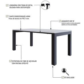 Sobre o ProdutoMesa de Jantar Bronx U 180x90x77cm BRMJ9180U çoDescrição do Produto:A mesa de jantar Bronx BRMJ9180U é a expressão perfeita da fusão entre elegância e robustez, ideal para ambientes modernos e contemporâneos. Com dimensões de 1,80x0,90m, esta peça impressiona pela sua presença marcante. O tampo engrossurado de 40mm, finalizado com fitas de PVC de 01mm, oferece uma superfície resistente e de excelente acabamento. A estrutura em tubos de aço 80x80mm, complementada por longarinas produzidas com tubos 30x50mm, garante estabilidade e durabilidade, enquanto o design minimalista proporciona um toque moderno e sofisticado a qualquer espaç linha City_Scape captura a sofisticação e o estilo das grandes metrópoles, trazendo móveis inspirados em bairros e cidades icônicas. Com design moderno e cosmopolita, cada peça reflete a elegância urbana, conectando ambientes contemporâneos à atmosfera vibrante das cidades ao redor do mundo. Os tampos engrossurados em MDP BP recobertos com fitas de borda em PVC de 01mm, garantem resistência e durabilidade com um acabamento refinado. As estruturas em aço com soldas a laser e suavizadas, possuem acabamento em pintura epóxi que confere solidez e um visual moderno, garantindo a longevidade e a robustez das peç Inclusos:1 Mesa de JantarDimensões dos Produtos:Mesa de Jantar Bronx U 180x90x77cm BRMJ9180U ço: 180 x 90 x 77 cmInformações Logísticas (Comp. X Prof. X Alt.) 188 x 103,5 x 6 cm - Peso: 29,31 94 x 82 x 20 cm - Peso: 10,44 KgPeso Total: 39,75 KgObservações:Não acompanha acessórios decorativos. Imagens meramente ilustrativas.Informações Técnicas / Características:- Cor do Produto: ço- Cor do Predominante: Revestido- Marca: Metalig- Modelo: BRMJ9180U- Linha: City_Scape- Material: Mdp- Material da Estrutura / Pés: Aço- Acabamento: BP- Escala de Brilho: Fosco- Fita de Borda: Pvc - Possui Gavetas: Não - Possui Pés: 2- Pés Niveladores: Sim - Acabamento Estrutura: Epóxi-Pó- Formato: Retangular -Observações: Possui 02 Lomgarinas horizontais de aço.- Suporta Até (kg): 100kg- Comprimento: 180cm- Profundidade: 90cm- Altura: 77cm - Peso Lí.: 37,62Kg- Recomendações de Uso, Manutenção e Limpeza: Para a limpeza, utilize flanela seca ou pano macio levemente umedecido em água. Utilize um pano seco em seguida. Evite com produtos químicos (solventes, thinner, acetona, etc) e não utilize nenhum tipo de esponja de aço.- Necessita de Montagem: Sim / Acompanha Manual de Montagem- Complexidade da Montagem: Média: pode ser montado por mais de uma pessoa e/ou necessite de maior conhecimento para montagem.- Garantia: 01 ano Altura: 77 cm | Comprimento: 180 cm | Marca: Compace | Largura: 90 cm | Quantidade máxima de pedido: 1 | Modelo: BRMJ9180U | Necessita montagem: Sim | Quantidade de volumes: 2 | Profundidade: 90 cm | Produto: Mesa de Jantar | Cômodo indicado: | Cozinhas: Material da estrutura | Aço: Cor | Multicolorido: Coleção | Industrial: Requer Baterias | Não: Certificação Externa | Manual de montagem e kit acessórios: | Sim: Preço de tabela | Fabricante | Compace: do Modelo | 1: da Peça | BRMJ9180U: Cor: Branco TX/
