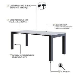 Sobre o ProdutoMesa de Jantar Bronx U 200x90x77cm BRMJ9200U çoDescrição do Produto:A mesa de jantar Bronx BRMJ9200U é a expressão perfeita da fusão entre elegância e robustez, ideal para ambientes modernos e contemporâneos. Com dimensões de 2,00x0,90m, esta peça impressiona pela sua presença marcante. O tampo engrossurado de 40mm, finalizado com fitas de PVC de 01mm, oferece uma superfície resistente e de excelente acabamento. A estrutura em tubos de aço 80x80mm, complementada por longarinas produzidas com tubos 30x50mm, garante estabilidade e durabilidade, enquanto o design minimalista proporciona um toque moderno e sofisticado a qualquer espaç linha City_Scape captura a sofisticação e o estilo das grandes metrópoles, trazendo móveis inspirados em bairros e cidades icônicas. Com design moderno e cosmopolita, cada peça reflete a elegância urbana, conectando ambientes contemporâneos à atmosfera vibrante das cidades ao redor do mundo. Os tampos engrossurados em MDP BP recobertos com fitas de borda em PVC de 01mm, garantem resistência e durabilidade com um acabamento refinado. As estruturas em aço com soldas a laser e suavizadas, possuem acabamento em pintura epóxi que confere solidez e um visual moderno, garantindo a longevidade e a robustez das peç Inclusos:1 Mesa de JantarDimensões dos Produtos:Mesa de Jantar Bronx U 200x90x77cm BRMJ9200U ço: 200 x 90 x 77 cmInformações Logísticas (Comp. X Prof. X Alt.) 208 x 103,5 x 6 cm - Peso: 31,8 94 x 82 x 20 cm - Peso: 10,44 KgPeso Total: 42,24 KgObservações:Não acompanha acessórios decorativos. Imagens meramente ilustrativas.Informações Técnicas / Características:- Cor do Produto: ço- Cor do Predominante: Revestido- Marca: Metalig- Modelo: BRMJ9200U- Linha: City_Scape- Material: Mdp- Material da Estrutura / Pés: Aço- Acabamento: BP- Escala de Brilho: Fosco- Fita de Borda: Pvc - Possui Gavetas: Não - Possui Pés: 2- Pés Niveladores: Sim - Acabamento Estrutura: Epóxi-Pó- Formato: Retangular -Observações: Possui 02 Lomgarinas horizontais de aço.- Suporta Até (kg): 100kg- Comprimento: 200cm- Profundidade: 90cm- Altura: 77cm - Peso Lí.: 39,95Kg- Recomendações de Uso, Manutenção e Limpeza: Para a limpeza, utilize flanela seca ou pano macio levemente umedecido em água. Utilize um pano seco em seguida. Evite com produtos químicos (solventes, thinner, acetona, etc) e não utilize nenhum tipo de esponja de aço.- Necessita de Montagem: Sim / Acompanha Manual de Montagem- Complexidade da Montagem: Média: pode ser montado por mais de uma pessoa e/ou necessite de maior conhecimento para montagem.- Garantia: 01 ano Altura: 77 cm | Comprimento: 200 cm | Marca: Compace | Largura: 90 cm | Modelo: BRMJ9200U | Quantidade máxima de pedido: 1 | Necessita montagem: Sim | Quantidade de volumes: 2 | Profundidade: 90 cm | Produto: Mesa de Jantar | Cômodo indicado: | Cozinhas: Material da estrutura | Aço: Cor | Multicolorido: Coleção | Industrial: Requer Baterias | Não: Certificação Externa | Manual de montagem e kit acessórios: | Sim: Preço de tabela | Fabricante | Compace: do Modelo | 1: da Peça | BRMJ9200U: Cor: Branco TX/