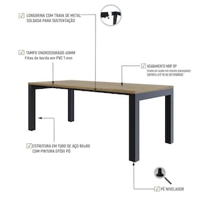 Sobre o ProdutoMesa de Jantar Bronx U 200x90x77cm BRMJ9200U çoDescrição do Produto:A mesa de jantar Bronx BRMJ9200U é a expressão perfeita da fusão entre elegância e robustez, ideal para ambientes modernos e contemporâneos. Com dimensões de 2,00x0,90m, esta peça impressiona pela sua presença marcante. O tampo engrossurado de 40mm, finalizado com fitas de PVC de 01mm, oferece uma superfície resistente e de excelente acabamento. A estrutura em tubos de aço 80x80mm, complementada por longarinas produzidas com tubos 30x50mm, garante estabilidade e durabilidade, enquanto o design minimalista proporciona um toque moderno e sofisticado a qualquer espaç linha City_Scape captura a sofisticação e o estilo das grandes metrópoles, trazendo móveis inspirados em bairros e cidades icônicas. Com design moderno e cosmopolita, cada peça reflete a elegância urbana, conectando ambientes contemporâneos à atmosfera vibrante das cidades ao redor do mundo. Os tampos engrossurados em MDP BP recobertos com fitas de borda em PVC de 01mm, garantem resistência e durabilidade com um acabamento refinado. As estruturas em aço com soldas a laser e suavizadas, possuem acabamento em pintura epóxi que confere solidez e um visual moderno, garantindo a longevidade e a robustez das peç Inclusos:1 Mesa de JantarDimensões dos Produtos:Mesa de Jantar Bronx U 200x90x77cm BRMJ9200U ço: 200 x 90 x 77 cmInformações Logísticas (Comp. X Prof. X Alt.) 208 x 103,5 x 6 cm - Peso: 31,8 94 x 82 x 20 cm - Peso: 10,44 KgPeso Total: 42,24 KgObservações:Não acompanha acessórios decorativos. Imagens meramente ilustrativas.Informações Técnicas / Características:- Cor do Produto: ço- Cor do Predominante: Revestido- Marca: Metalig- Modelo: BRMJ9200U- Linha: City_Scape- Material: Mdp- Material da Estrutura / Pés: Aço- Acabamento: BP- Escala de Brilho: Fosco- Fita de Borda: Pvc - Possui Gavetas: Não - Possui Pés: 2- Pés Niveladores: Sim - Acabamento Estrutura: Epóxi-Pó- Formato: Retangular -Observações: Possui 02 Lomgarinas horizontais de aço.- Suporta Até (kg): 100kg- Comprimento: 200cm- Profundidade: 90cm- Altura: 77cm - Peso Lí.: 39,95Kg- Recomendações de Uso, Manutenção e Limpeza: Para a limpeza, utilize flanela seca ou pano macio levemente umedecido em água. Utilize um pano seco em seguida. Evite com produtos químicos (solventes, thinner, acetona, etc) e não utilize nenhum tipo de esponja de aço.- Necessita de Montagem: Sim / Acompanha Manual de Montagem- Complexidade da Montagem: Média: pode ser montado por mais de uma pessoa e/ou necessite de maior conhecimento para montagem.- Garantia: 01 ano Altura: 77 cm | Comprimento: 200 cm | Marca: Compace | Largura: 90 cm | Modelo: BRMJ9200U | Quantidade máxima de pedido: 1 | Necessita montagem: Sim | Quantidade de volumes: 2 | Profundidade: 90 cm | Produto: Mesa de Jantar | Cômodo indicado: | Cozinhas: Material da estrutura | Aço: Cor | Multicolorido: Coleção | Industrial: Requer Baterias | Não: Certificação Externa | Manual de montagem e kit acessórios: | Sim: Preço de tabela | Fabricante | Compace: do Modelo | 1: da Peça | BRMJ9200U: Cor: Vermont OAK/