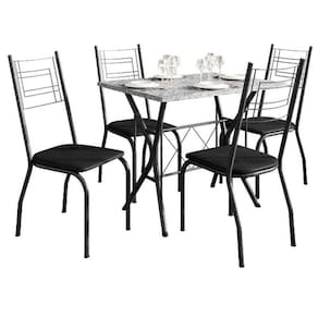Mesa de Jantar Bruna 100x60 cm com Granito Ocre Itabira com 4 Cadeiras 063 Preto Artefamol