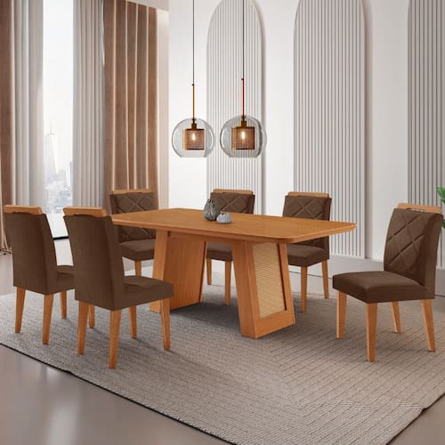 Mesa de Jantar Carolina Tampo 180cm MDF Canto Copo e 6 Cadeiras Melissa Moderna Mobilia - Marrom Chocolate