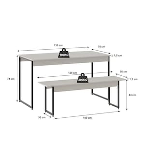 Sobre o ProdutoMesa de Jantar Tub C/01 Banco. Descrição do Produto:A Mesa de Jantar C/01 Banco Tub é perfeita para sua sala de jantar ou de lazer, levando o estilo de decoração industrial e contemporâneo a sua casa. Fabricado com estrutura em tubos de aço com pintura epóxi e MDP Perffect com Microban que inibe a proliferação de fungos e bactérias, além das fitas em PVC, conferindo muito mais qualidade ao seu mó linha Tub traz móveis contemporâneos com estilo industrial, perfeitos para sua sala, cozinha ou área de lazer. Fabricado com estrutura em tubos de aço com pintura epóxi e MDP Perffect com Microban que inibe a proliferação de fungos e bactérias, além das fitas em PVC, conferindo muito mais qualidade ao seu mó Inclusos:1 Mesa de Jantar C/01 BancoDimensões dos Produtos:Mesa de Jantar Tub C/01 Banco: 135 x 70 x 74 cmInformações Logísticas (Comp. X Prof. X Alt.) 146 x 74 x 9 cm - Peso: 21,93 KgPeso Total: 21,93 KgObservações:Não acompanha acessórios decorativos. Imagens meramente ilustrativas.Informações Técnicas / Características:- Cor do Produto: Amadeirado / - Marca: Compace- Modelo: Linha: Tub- Material: Mdp- Material da Estrutura / Pés: Aço- Acabamento: Perffect Acetinado- Escala de Brilho: Fosco- Fita de Borda: Pvc - Possui Gavetas: Não - Possui Pés: 2- Pés Niveladores: Sim - Acabamento Estrutura: Epóxi-Pó Texturizado- Formato: Retangular -Observações: Suporte de peso do Banco: 200kg- Suporta Até (kg): 90 kg- Comprimento: 135cm- Profundidade: 70cm- Altura: 74cm - Peso Lí.: 20,5Kg- Recomendações de Uso, Manutenção e Limpeza: Para a limpeza, utilize flanela seca ou pano macio levemente umedecido em água. Utilize um pano seco em seguida. Evite com produtos químicos (solventes, thinner, acetona, etc) e não utilize nenhum tipo de esponja de aço.- Necessita de Montagem: Sim / Acompanha Manual de Montagem- Complexidade da Montagem: Média: pode ser montado por mais de uma pessoa e/ou necessite de maior conhecimento para montagem.- Garantia: 6 meses