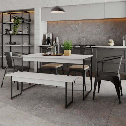 Sobre o ProdutoMesa de Jantar Tub C/01 Banco Branco Chess / Est.PretaDescrição do Produto:A Mesa de Jantar C/01 Banco Tub TUCJ7135.1B é perfeita para sua sala de jantar ou de lazer, levando o estilo de decoração industrial e contemporâneo a sua casa. Fabricado com estrutura em tubos de aço com pintura epóxi e MDP Perffect com Microban que inibe a proliferação de fungos e bactérias, além das fitas em PVC, conferindo muito mais qualidade ao seu móvel.A linha Tub traz móveis contemporâneos com estilo industrial, perfeitos para sua sala, cozinha ou área de lazer. Fabricado com estrutura em tubos de aço com pintura epóxi e MDP Perffect com Microban que inibe a proliferação de fungos e bactérias, além das fitas em PVC, conferindo muito mais qualidade ao seu móvel.Itens Inclusos:1 Mesa de Jantar C/01 BancoDimensões dos Produtos:Mesa de Jantar Tub C/01 Banco Branco Chess / Est.Preta: 135 x 70 x 74 cmInformações Logísticas (Comp. X Prof. X Alt.):Vol.01: 146 x 74 x 9 cm Peso: 21,93 KgPeso Total: 21,93 KgObservações:Não acompanha acessórios decorativos. Imagens meramente ilustrativas.Informações Técnicas / Características: Cor do Produto: Branco Chess / Est.Preta Marca: Compace Modelo: TUCJ7135.1B Linha: Tub Material: Mdp Material da Estrutura / Pés: Aço Acabamento: Perffect Acetinado Escala de Brilho: Fosco Fita de Borda: Pvc Possui Gavetas: Não Possui Pés: 2 Pés Niveladores: Sim Acabamento Estrutura: Epóxi-Pó Texturizado Formato: Retangular Observações: Suporte de peso do Banco: 200kg Suporta Até (kg): 90 kg Comprimento: 135cm Profundidade: 70cm Altura: 74cm Peso Líq.: 20,5Kg Recomendações de Uso, Manutenção e Limpeza: Para a limpeza, utilize flanela seca ou pano macio levemente umedecido em água. Utilize um pano seco em seguida. Evite contato com produtos químicos (solventes, thinner, acetona, etc) e não utilize nenhum tipo de esponja de aço. Necessita de Montagem: Sim / Acompanha Manual de Montagem Complexidade da Montagem: Média: pode ser montado por mais de uma pessoa e/ou necessite de maior conhecimento para montagem. Garantia: 6 meses