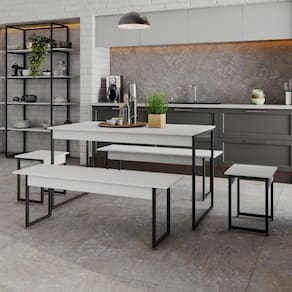 Sobre o ProdutoMesa de Jantar Tub C/02 Bancos e 02 Banquetas Branco Chess / Est.PretaDescrição do Produto:A Mesa de Jantar C/02 Bancos e 02 Banquetas Tub é um produto prático e versátil, que pode ser utilizado em diversos ambientes, como quarto e escritório, na sala, cozinha ou seu depó linha Tub traz móveis contemporâneos com estilo industrial, perfeitos para sua sala, cozinha ou área de lazer. Fabricado com estrutura em tubos de aço com pintura epóxi e MDP Perffect com Microban que inibe a proliferação de fungos e bactérias, além das fitas em PVC, conferindo muito mais qualidade ao seu mó Inclusos:1 Mesa de Jantar C/02 Bancos e 02 BanquetasDimensões dos Produtos:Mesa de Jantar Tub C/02 Bancos e 02 Banquetas Branco Chess / 135 x 70 x 74 cmInformações Logísticas (Comp. X Prof. X Alt.) 146 x 74 x 9 cm - Peso: 35,03 KgPeso Total: 35,03 KgObservações:Não acompanha acessórios decorativos. Imagens meramente ilustrativas.Informações Técnicas / Características:- Cor do Produto: Branco Chess / - Marca: Compace- Modelo: Linha: Tub- Material: Mdp- Material da Estrutura / Pés: Aço- Acabamento: Perffect Acetinado- Escala de Brilho: Fosco- Fita de Borda: Pvc - Possui Gavetas: Não - Possui Pés: 2- Pés Niveladores: Sim - Acabamento Estrutura: Epóxi-Pó Texturizado- Formato: Retangular -Observações: Suporte de peso do Banco: 200kg / Banqueta: 100kg- Suporta Até (kg): 90 kg- Comprimento: 135cm- Profundidade: 70cm- Altura: 74cm - Peso Lí.: 33,6Kg- Recomendações de Uso, Manutenção e Limpeza: Para a limpeza, utilize flanela seca ou pano macio levemente umedecido em água. Utilize um pano seco em seguida. Evite com produtos químicos (solventes, thinner, acetona, etc) e não utilize nenhum tipo de esponja de aço.- Necessita de Montagem: Sim / Acompanha Manual de Montagem- Complexidade da Montagem: Média: pode ser montado por mais de uma pessoa e/ou necessite de maior conhecimento para montagem.- Garantia: 6 meses Material: Mdp | Acabamento: Perffect Acetinado | Escala de Brilho: Fosco | Fita de Borda: Pvc | Material da Estrutura: Aço | Acabamento da Estrutura: Epóxi-Pó Texturizado | Is Fragile: false | do modelo: | Baterias são necessárias?: false | Palavras-chave de Pesquisa: Não se Aplica | da peça: | de caixas: 1 | Componentes incluídos: Manual de montagem e kit acessórios | Fabricante: Compace | Quantidade de itens: 5 | Principais Características do Produto 0: MDP Perffect | Cor: Multicolorido | Certificação de teste externa: Não aplicável | Principais Características do Produto 1: Fitas em PVC | Principais Características do Produto 2: Epóxi-Pó | Peso do item: value=35,03;unit=kilograms | Dimensões do item P x L x A: width#value=135;width#unit=centimeters;depth#unit=centimeters;height#value=74;depth#value=70;height#unit=centimeters Cor: Branco Chess /
