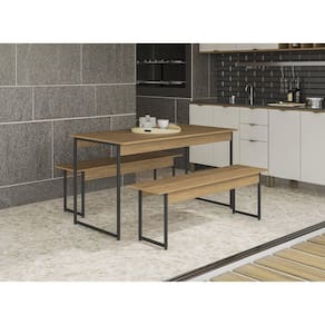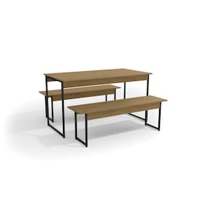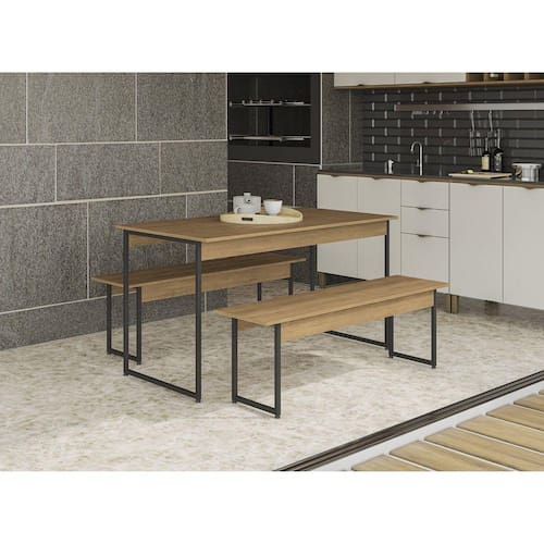 Moderna e funcional, a Mesa com 2 bancos LI013 da linha industrial é perfeita para ser utilizada na área de lazer. Produzida em estrutura metálica e pintada com tinta epóxi, mais resistente a umidade, o tampo da mesa e dos bancos é amadeirado com pintura touch, tornando a composição moderna e elegante. Com 1,36m de largura, cada banco suporta até 210kg, sendo a escolha perfeita para refeições em família ou para receber os amigos. Fácil de montar e ajustável em todos os pisos, a mesa e os dois bancos possuem sapatas reguladoras, garantindo mais estabilidade. Possui Prateleiras: Não Possui Gavetas: Não Acabamento: Pintura Ambiente Principal: Escritório codigo_ean: 7895155320966 Complexidade da Montagem: Média: pode ser montado por mais de uma pessoa e/ou necessite de maior conhecimento para montagem Cor: Freijó/Preto Fosco Cor do Produto: Freijo/Preto Fosco Cor do Tampo: Marrom Dobrável: Não Escala de Brilho: Fosco Espessura do Tampo: 15 mm Formato da Mesa: Retangular Itens Inclusos: 1 MESA, MANUAL DE MONTAGEM E FERRAGENS Manual de Montagem e Instalação: https://product-hub-prd.madeiramadeira.com.br/839373/documents/72a1c25b-baa2-42b7-b6f5-248df449b2b41249005li013.pdf Material do Tampo: MDP Material Principal: MDP Necessita Montagem: Sim Origem do Produto: Nacional Peso: 29,49 kg Peso da Mesa: 29.4968 Possui Passa Cabos: Não Possui Porta Objetos: Não Possui Suporte para Teclado: Não Possui Vidro: Não Recomendações de Uso, Manutenção e Limpeza: Limpeza diária somente com pano seco (flanela) ou pano branco e macio, pois o acúmulo de sujeira estimula o aparecimento de ferrugem. Evitar limpar com água, pois pode ocorrer o acúmulo de líquido em regiões especíicas da peça. Não utilizar produtos de limpeza que possuem cloro em sua formação. Encerar no mínimo uma vez por mês com cera automotiva. Em zona litorânea encerrar pelo menos 1 vez por semana. A maresia e a umidade são altamente prejudiciais ao revestimento. Não utilizar qualquer tipo abrasivo de limpeza. Não deixar as estruturas expostas ao ambiente externo como sacadas, patios...etc. Batidas na estrutura podem ocasionar riscos e desplacamento da camada de pintura. Sapatas Niveladoras: Sim Sistema de Montagem: Parafuso Philips Suporta Até (kg): 60 kg Ean: 7895155320966