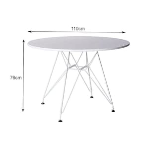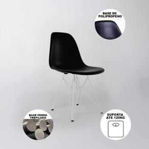 Mesa De Jantar Com 4 Cadeiras Pretas Eames Eiffel Tampo Redondo Branco 110cm Base Ferro BrancoO Jogo de Mesa e Cadeiras Eames Eiffel se destaca pelo design moderno e sofisticado. A Cadeira Eames Eiffel é confeccionada em polipropileno, sua base é em ferro, o que confere total resistência e conforto. O Jogo de Mesa e Cadeiras Eames Eiffel da vida ao ambiente além de combinar com todos os tipos e cores de móveis.CARACTERISTICASTipo: ConjuntoModelo: Eiffel RedondoFerro: BrancoDIMENSÕES DO PRODUTOCadeiraCor: PretoAltura: 85cmLargura: 47cmProfundidade: 50cmAssento x Chão: 45cmMesa:Cor: BrancoAltura: 76cmDiâmetro: 110cmObs: Imagens Meramente IlustrativaMesa de Jantar com 4 Cadeiras Pretas Eames Eiffel Tampo Redondo Branco 110cm Base Ferro Branco