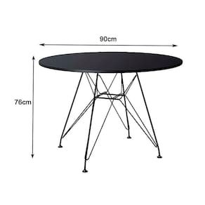 Mesa De Jantar Com 4 Cadeiras Eames Eiffel Tampo Redondo Preto 90cm Base De Ferro PretoO Jogo de Mesa e Cadeiras Eames Eiffel se destaca pelo design moderno e sofisticado. A Cadeira Eames Eiffel é confeccionada em polipropileno, sua base é em ferro, o que confere total resistência e conforto. O Jogo de Mesa e Cadeiras Eames Eiffel da vida ao ambiente além de combinar com todos os tipos e cores de móveis.CARACTERISTICASTipo: ConjuntoModelo: Eiffel RedondoFerro: PretoDIMENSÕES DO PRODUTOCadeiraCor: PretoAltura: 85cmLargura: 47cmProfundidade: 50cmAssento x Chão: 45cmMesa:Cor: PretoAltura: 76cmDiâmetro: 90cmObs: Imagens Meramente IlustrativaMesa de Jantar com 4 Cadeiras Eames Eiffel Tampo Redondo Preto 90cm Base de Ferro Preto