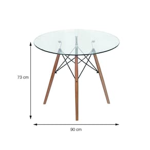 A Mesa DKR possui tampo de vidro temperado redondo, base em madeira com fios de aço carbono pintados entrelaçados e possui 4 lugares. Uma mesa versátil que combina com vários tipos de decoração, o que dá mais praticidade em casa.