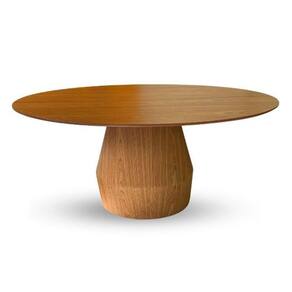 A base cônica central, inspirada nas formas orgânicas e fluídas, garante estabilidade e um visual leve, destacando ainda mais a beleza natural da madeira Freijó conhecida por seus veios marcantes e tonalidade quente.