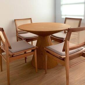 DESCRIÇÃO DO PRODUTO- Mesa de Jantar Cone Eclipse Redonda de 80 cm.- Tampo em MDF 18mm borda reta e laminada em fita de madeira natural. - Base estruturada em MDF Fiberboad e laminado com madeira natural.