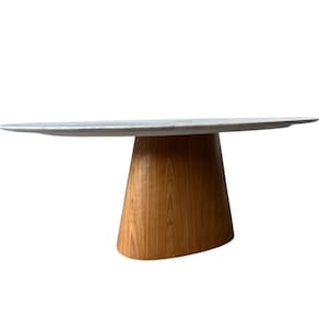 A mesa de jantar Cone Oval Freijó com tampo de mármore Branco Extra é uma peça de mobiliário que une elegância e sofisticação. O design oval da mesa proporciona um ambiente aconchegante e facilita a interação entre os convidados. A base em freijó, uma madeira nobre e resistente, confere um toque de calor e naturalidade ao espaço. O tampo de mármore Branco Extra, por sua vez, destaca-se pela sua beleza e durabilidade, oferecendo uma superfície lisa e brilhante que eleva o requinte da mesa. Essa combinação de materiais resulta em uma peça de destaque, ideal para compor salas de jantar contemporâneas e sofisticadas.