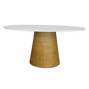 Mesa De Jantar Cone Oval 160x90 cm Tampo Laca Branca Base Fibra Natural